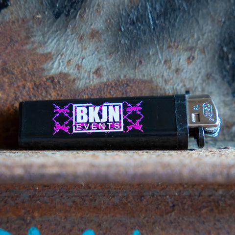 Light up your cigarette with the BKJN Lighter - Barbwire Blue or BKJN Lighter - Barbwire Pink! The BKJN Lighter is black with our logo and blue or pink barbwire on the front.